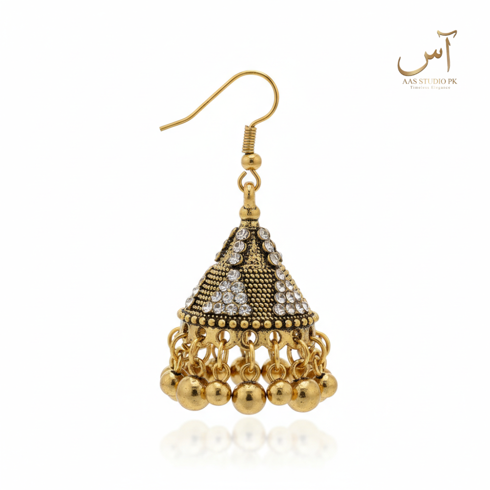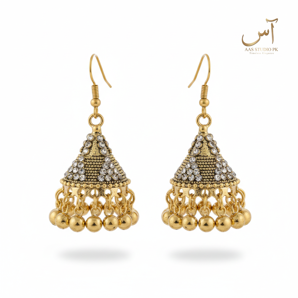 Antique Gold Crystal Bell Jhumkas