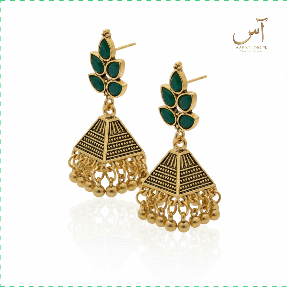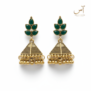 Be the first to review “Emerald Green Leaf Stud Jhumkas”