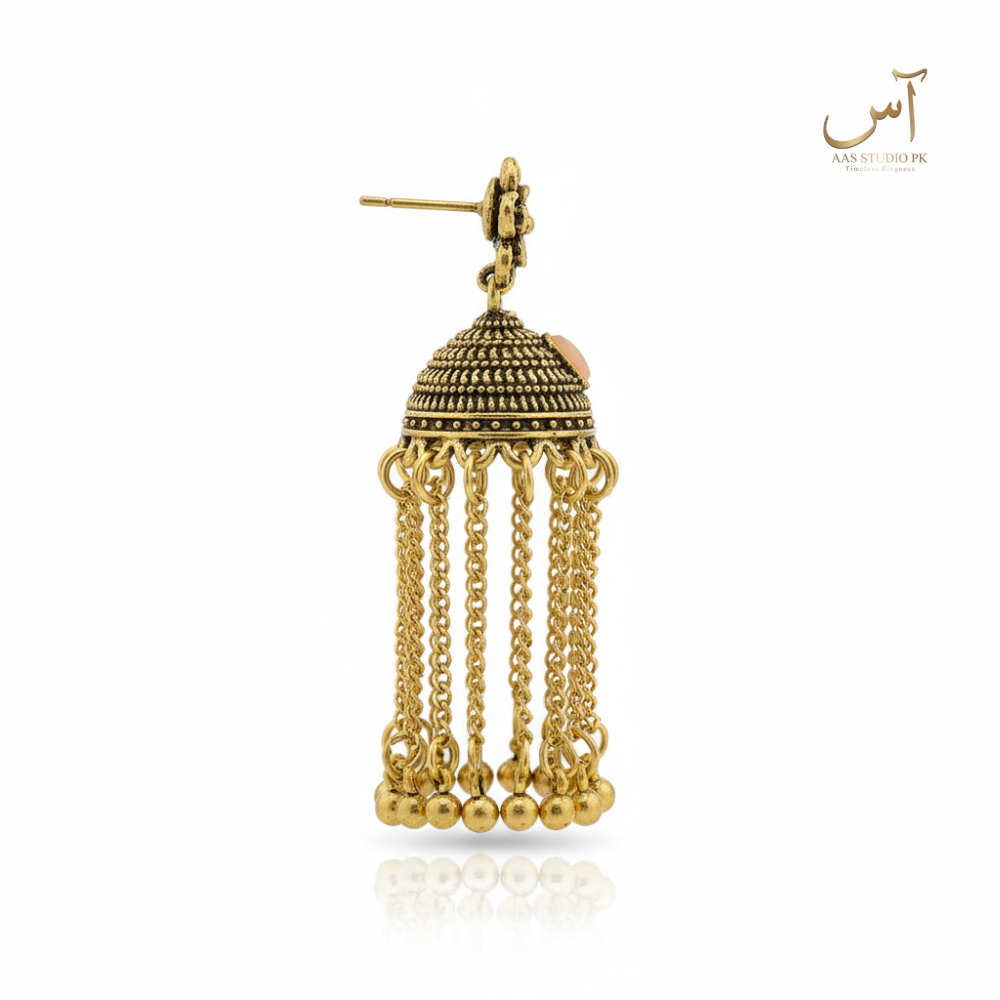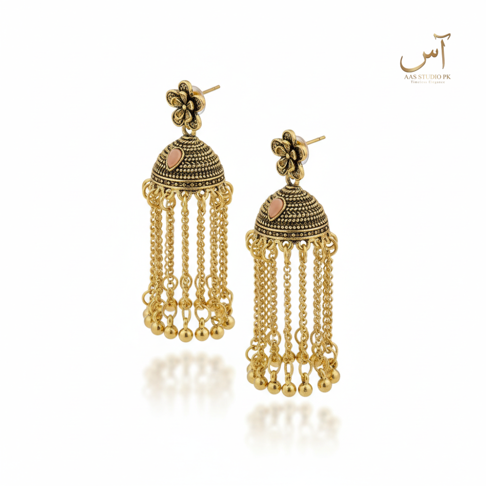 Be the first to review “Golden Flower Long Tassel Jhumkas”