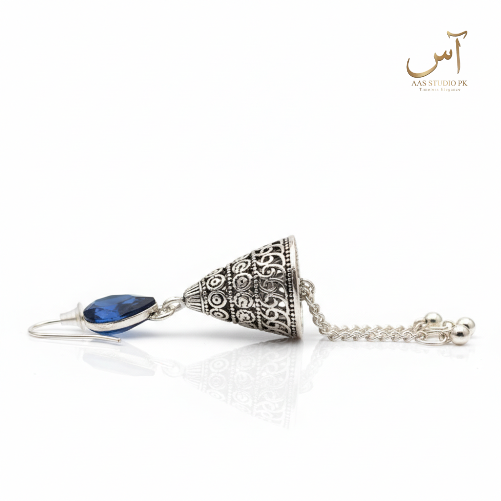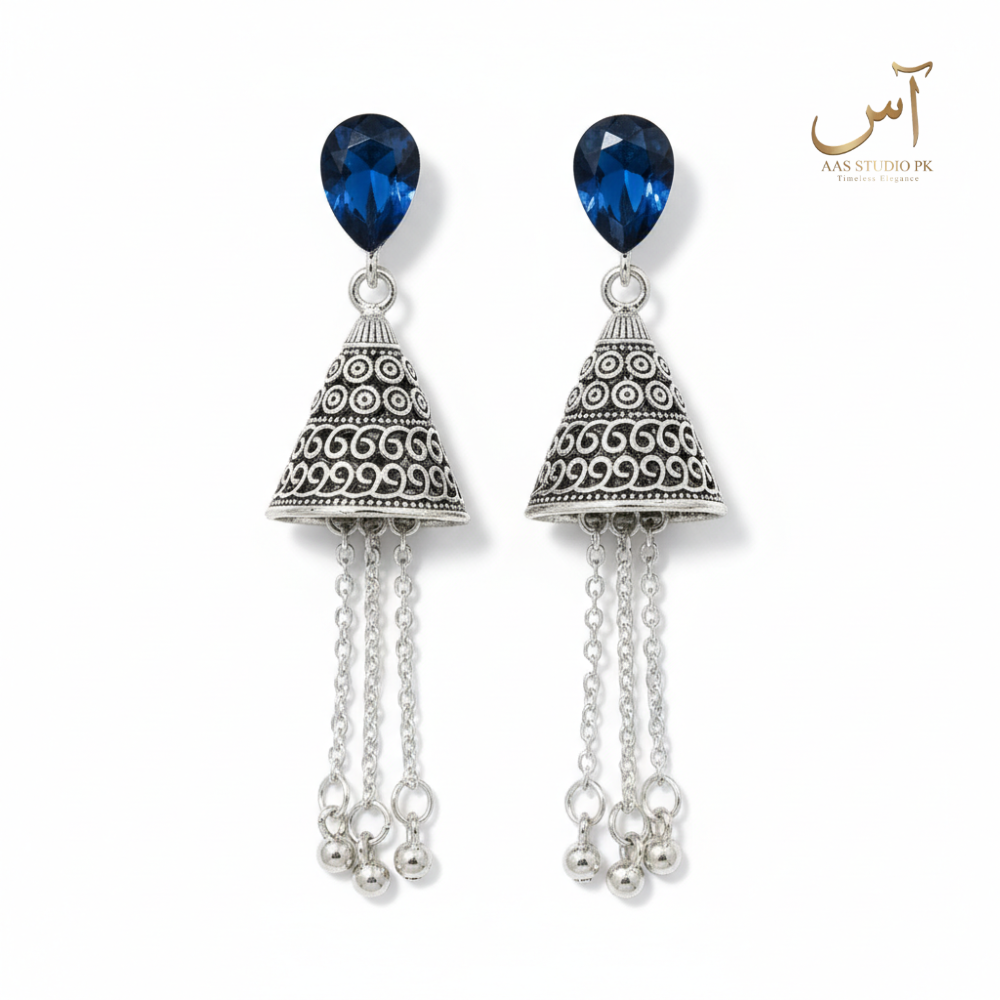 Sapphire Blue Teardrop Tassel Jhumkas