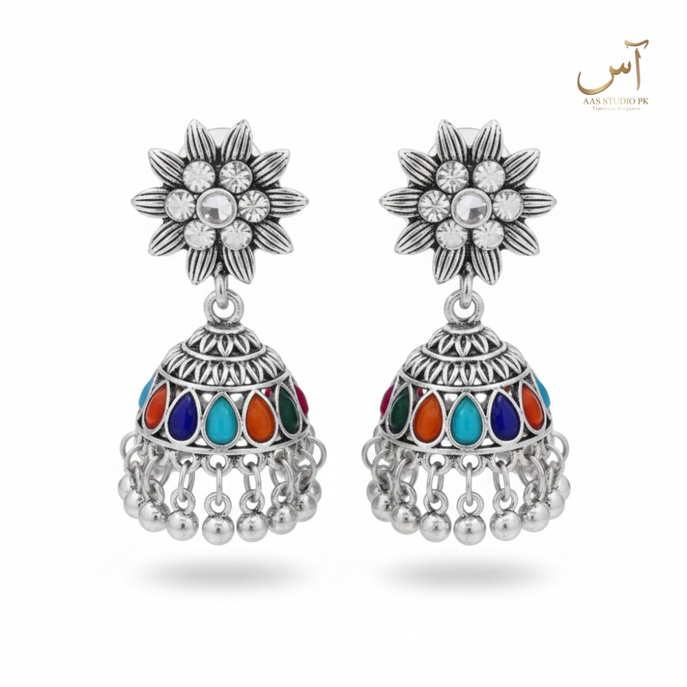 Be the first to review “Silver Sunflower Multi-Color Jhumkas” Cancel reply