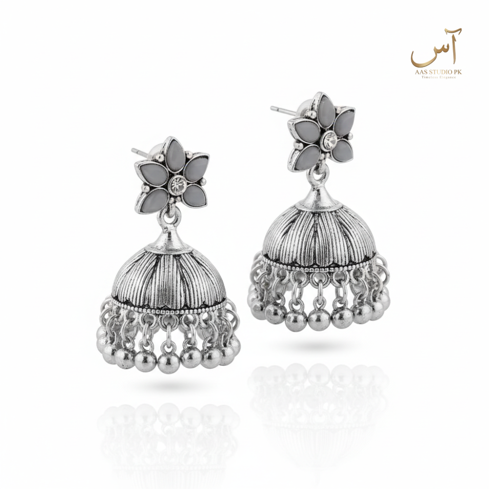 Slate Grey Floral Petal Jhumkas