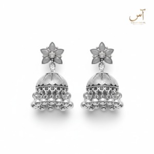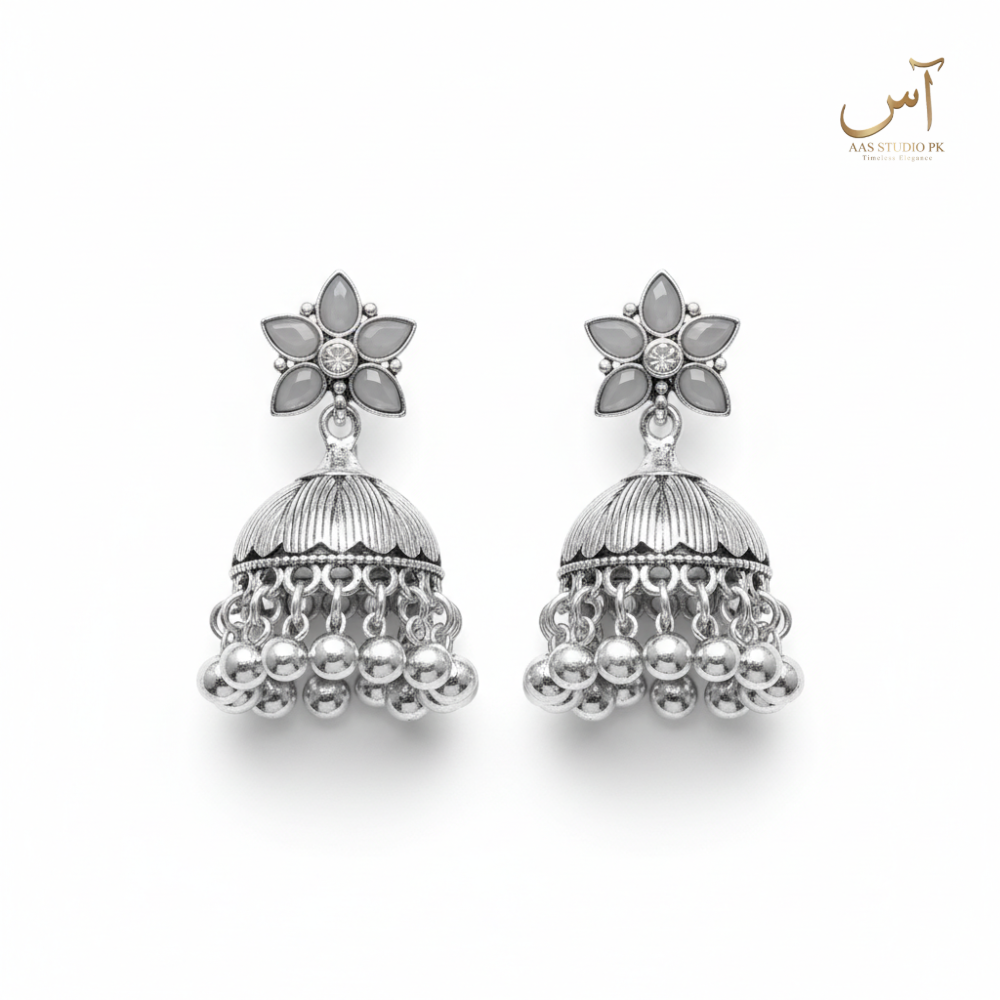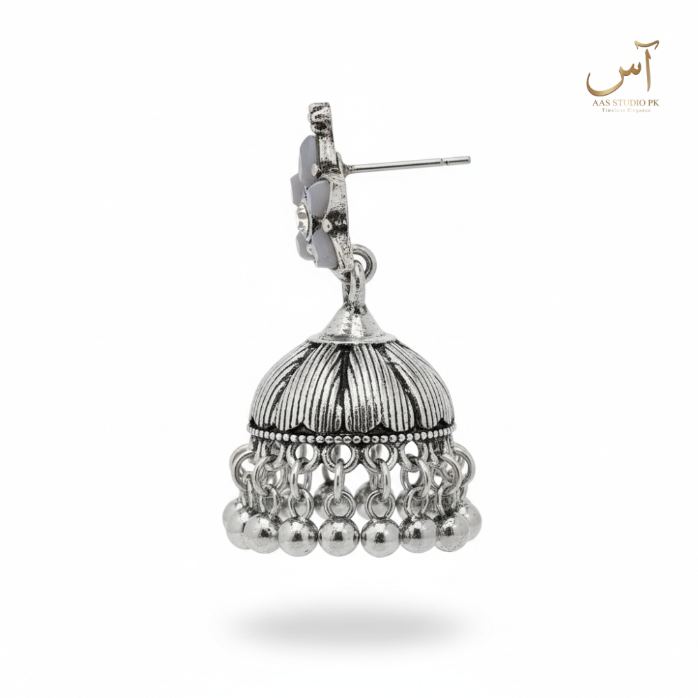 Oxidized Silver Floral Crest Jhumkas